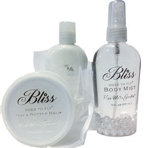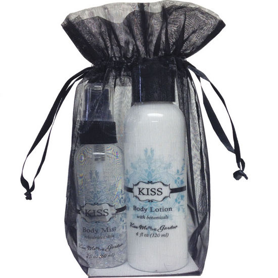 | This great little set contains a 4 oz Body Lotion and a 2 oz Body Mist with crystals in a black chiffon bag-- great gift idea! |