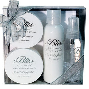 | The fabulous NEW gift set contains a shea butter balm, a soap based slat scrub, a body lotion and a body mist-- all of our VERY BEST products. It's a great value and a wonderful gift. |