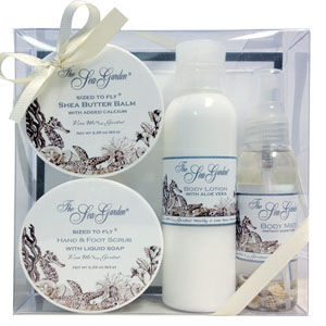 | This GREAT new gift set includes our most popular SEA GARDEN items! Our Shea Butter Balm, our Salt Scrub, the Body Lotion and the amazing Body Mist. The ultimate Sea Garden gift! |